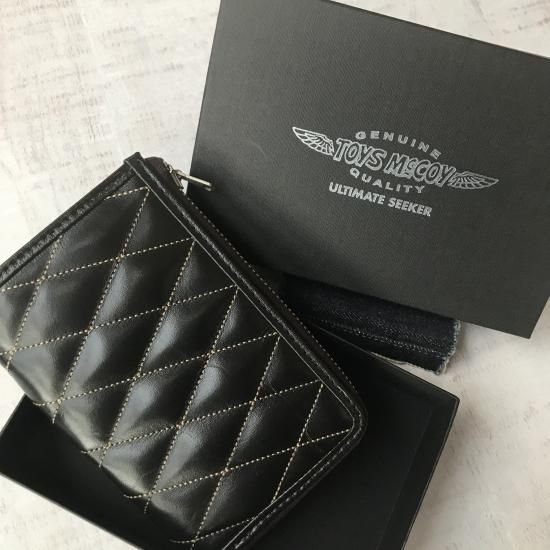 上質なホースハイドを使用し、ダイヤモンドステッチを施したトイズマッコイのキルティングミドルウォレット。