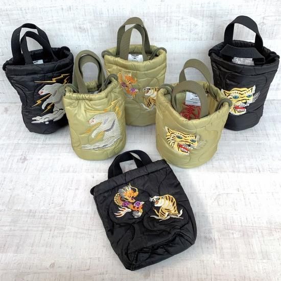 アメカジのアウターの中でも人気のあるスカジャンやベトジャンに用いられるような刺繍柄を施した【HOUSTON/ヒューストン】のエフェクトバッグです。