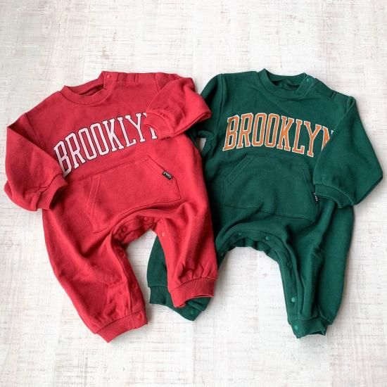 カレッジ風プリントがポイントの裏毛ロンパース。